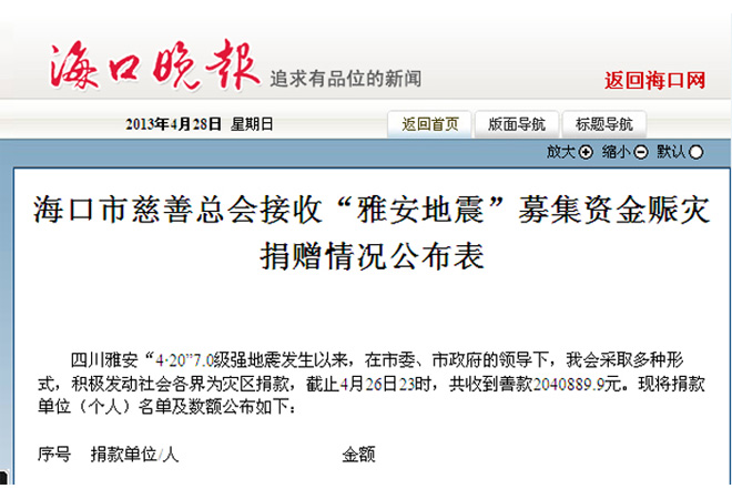 “雅安地震”募集資金賑災捐贈