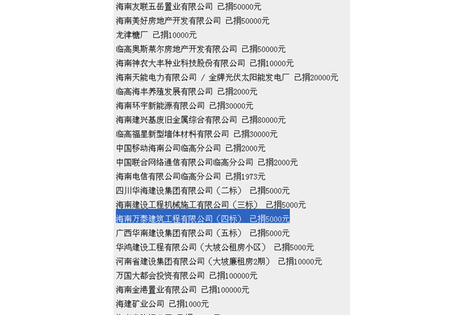 2013年臨高縣“愛心助學·陽光行動”企業捐款