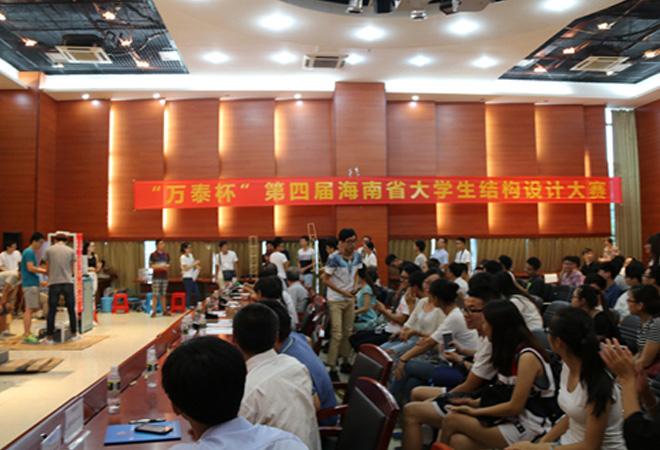5月30日早上8點,思源學堂多功能廳座無虛席。由海南萬泰建筑工程有限公司冠名的“萬泰杯”第四屆海南省大學生結構設計大賽正式開始。